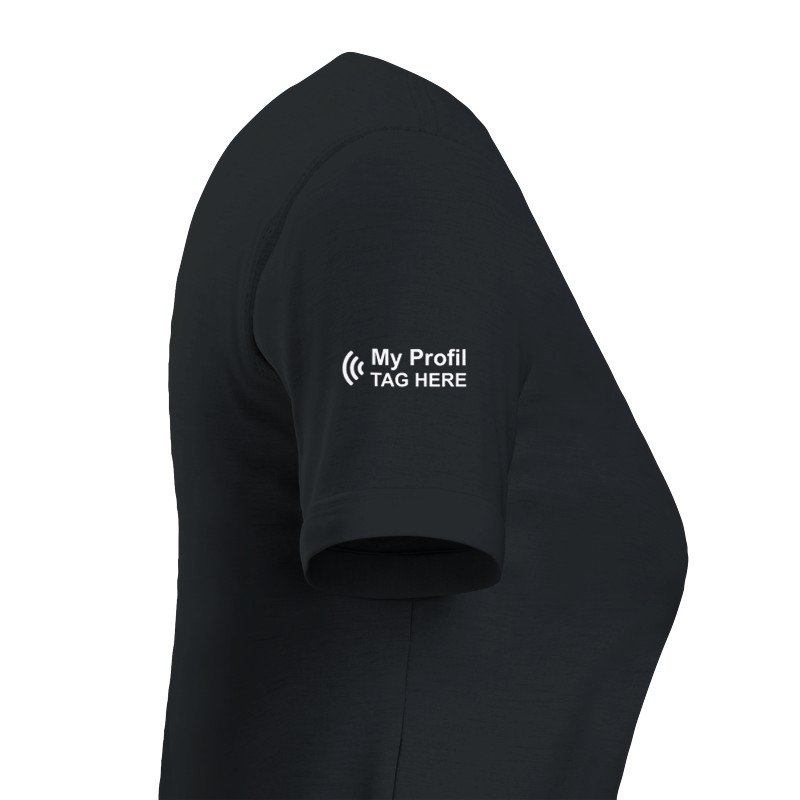 Notre t-shirt connecté pour femme allie style contemporain et technologie NFC. Sa coupe ajustée met en valeur votre silhouette tout en vous permettant de partager instantanément votre profil social.